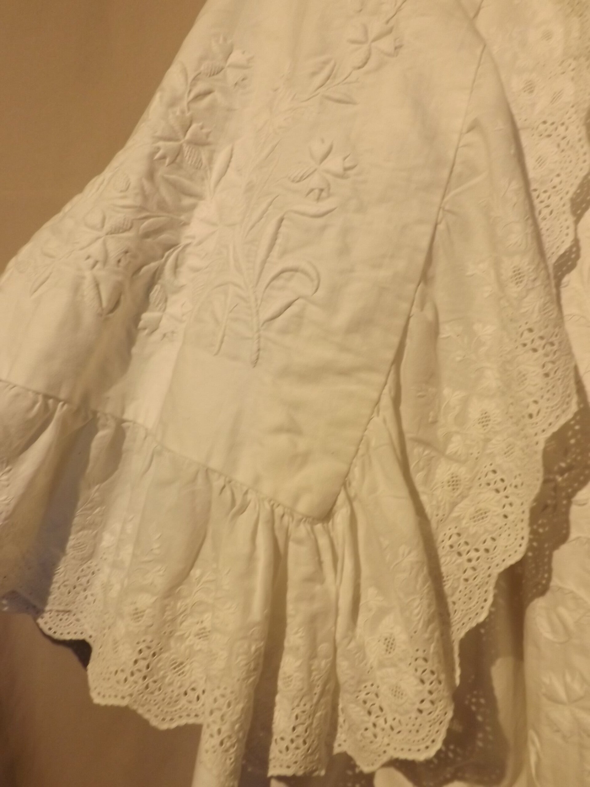 superbe manteau et cape de baptême en piqué, broderies en relief.