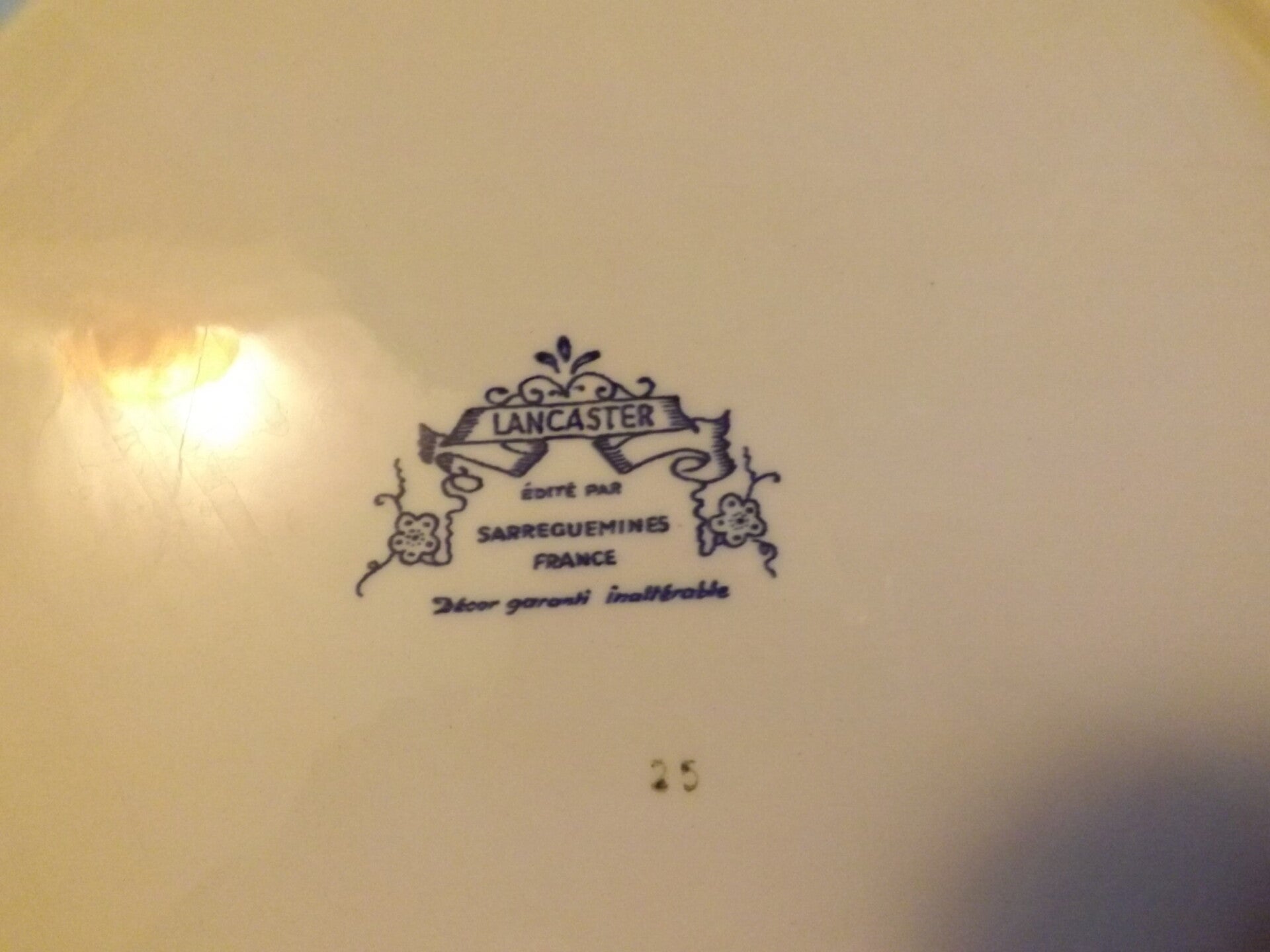 plat Sarreguemines, modèle Lancaster, numéo 25