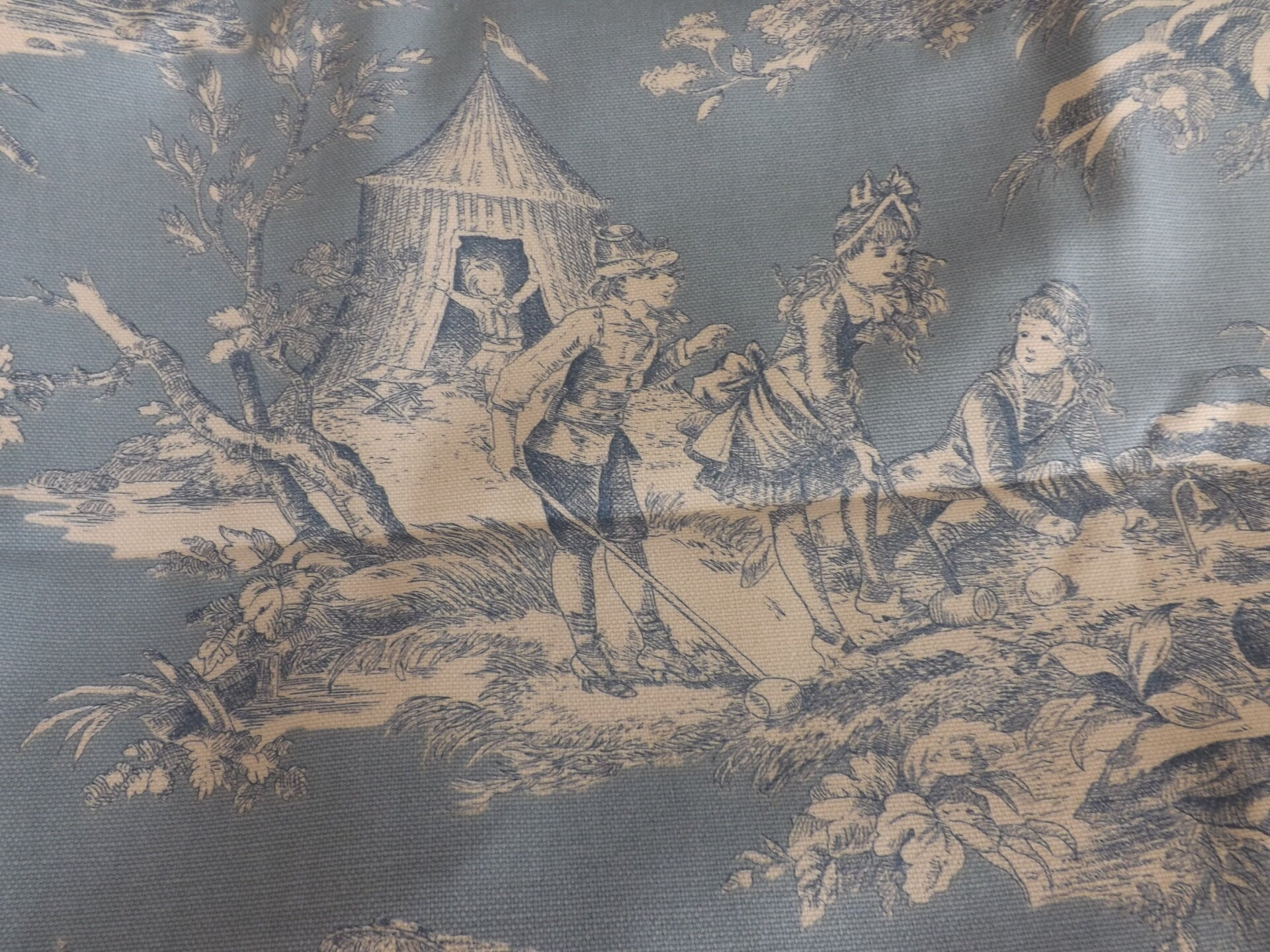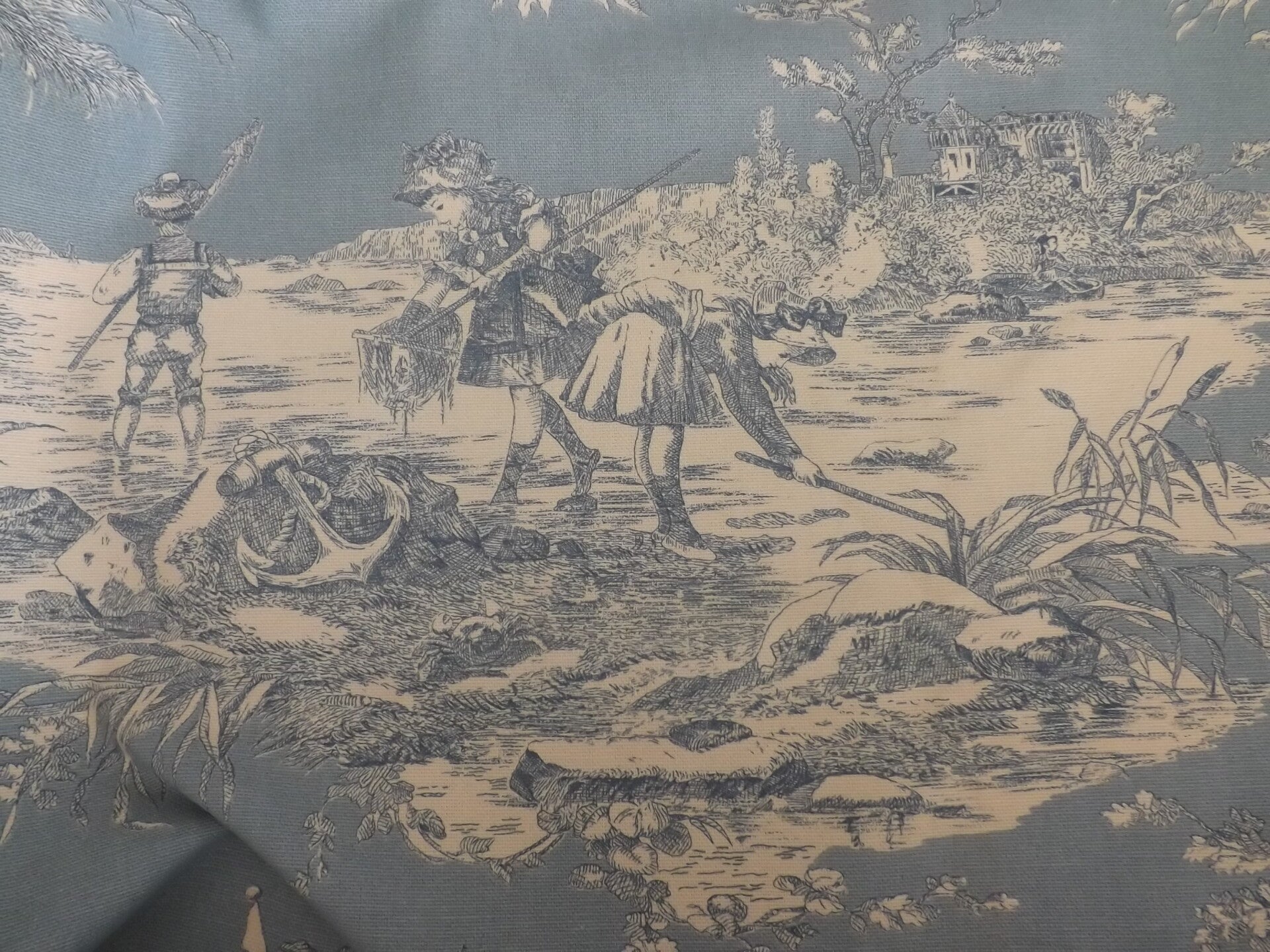 belle toile de Jouy, tissu ameublement marqué : histoire d'eau